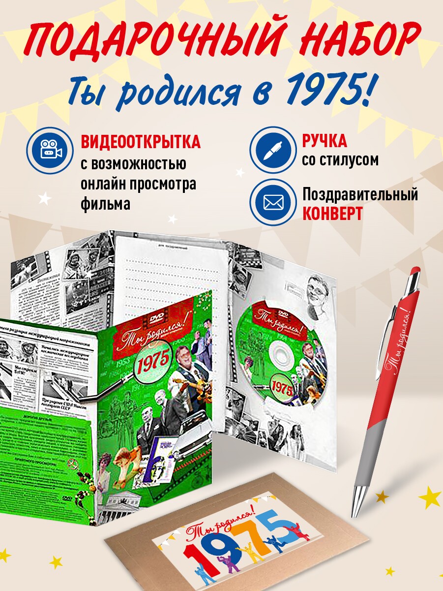 В каждой серии — рассказ о политических, спортивных и культурных событиях, новости из жизни людей, истории съемок лучших фильмов советского и зарубежного кинематографа. Биографии актеров и режиссеров. Именинник увидит, что происходило в мире в год его рождения. На внутренней части открытки есть место, где вы можете написать поздравление и, при желании, вложить конверт с денежным подарком.