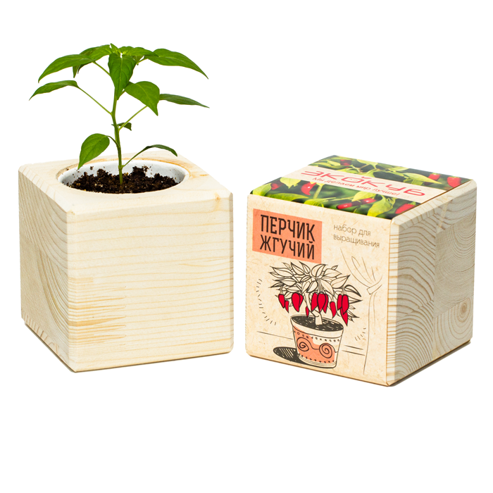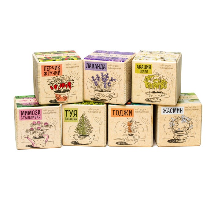 В наборе для выращивания есть все, что нужно: экологически чистый кубический «горшок» из натуральной древесины, семена и специальный питательный грунт, подходящий для конкретного сорта. Все, что нужно сделать - это посадить семена и поливать.